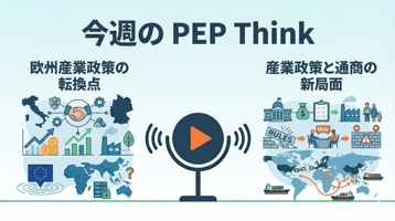 海外シンクタンクの議論を日本語で読み解き、日本のビジネスや政策への含意を考えるポッドキャストシリーズ 「PEP Think」。 今回は、「欧州産業政策の転換点」と「産業政策と通商の新局面...
