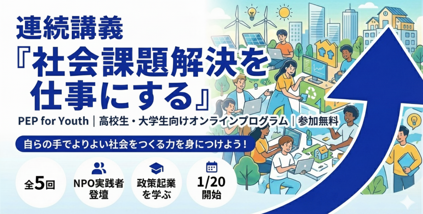 国際文化会館 政策起業家プラットフォーム(Policy Entrepreneur's Platform、PEP)では、2025 年 の1 年間を通して「PEP for Non-Profit Start...