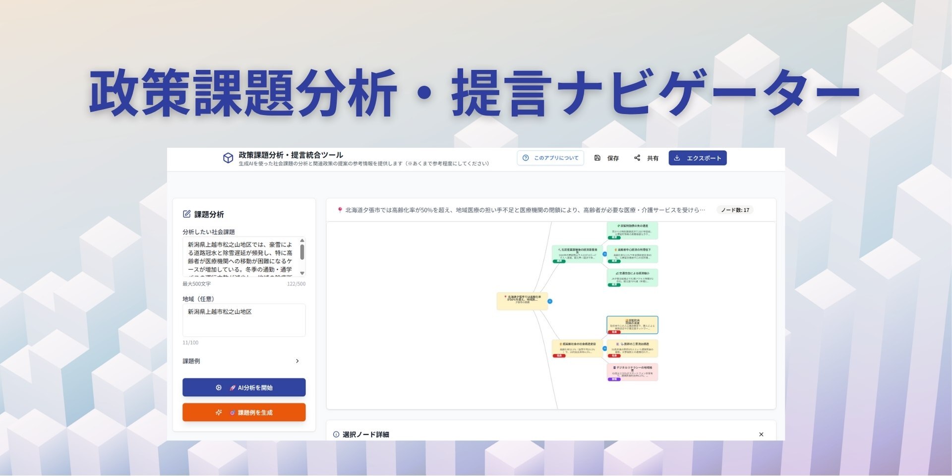 はじめに 民間・市民が政策を起業していく大まかな流れは以下のようなものです。 社会課題・政策課題を分析する(原因を深掘りする) 原因に対する効果的な解決策(政策)を考える 政策に対して適切な人・組織を...